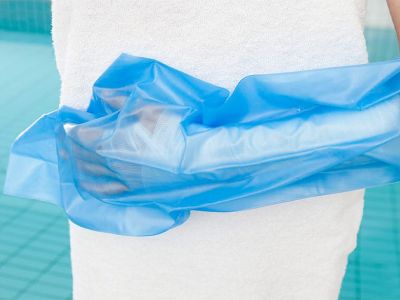 Med AquaStop kan en badeferie gennemføres, selv med gips eller en større forbinding på arm eller ben. Aquastop kan en badeferie gennemføres, selv med gips eller en større forbinding på arm eller ben. AquaStop er en pose, der fungerer som beskyttelse af f.eks. en hånd, arm eller fod, der ikke må blive våd pga. Gips eller anden forbinding.